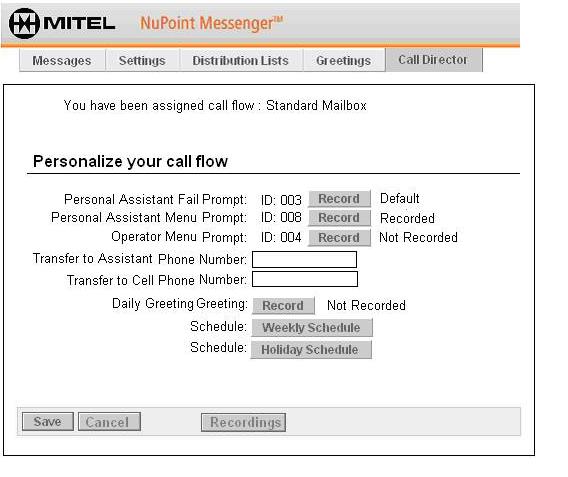 If you are a Regular user and the system administrator has configured the parameters of your call flow for you, your Call Director tab will look something like the following example: