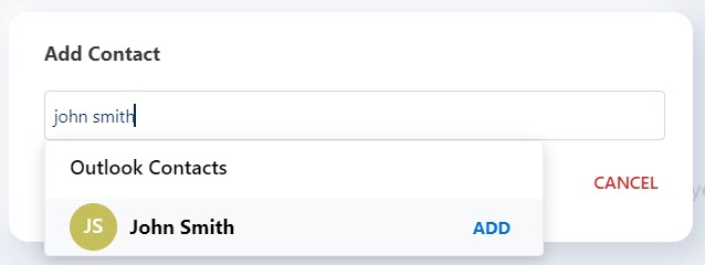 - En el campo Buscar, escriba el nombre del contacto. El campo Buscar muestra una lista de contactos cuyos nombres coinciden con las letras que escribe. Desplácese sobre el nombre del contacto que desea agregar y haga clic en AGREGAR para agregar el contacto como marcación rápida. Al hacer clic en Cancelar se cancela la operación.