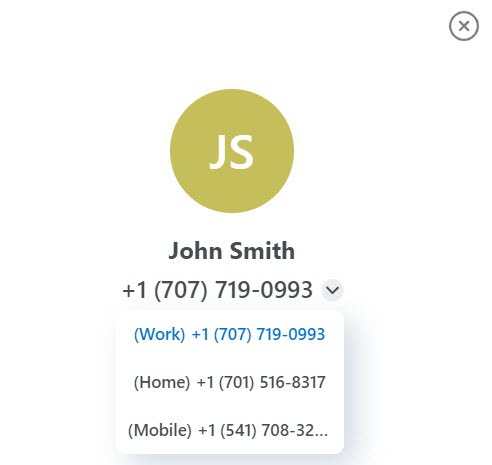 junto al número predeterminado, seleccione el número que desea marcar en el menú desplegable y haga clic en el icono