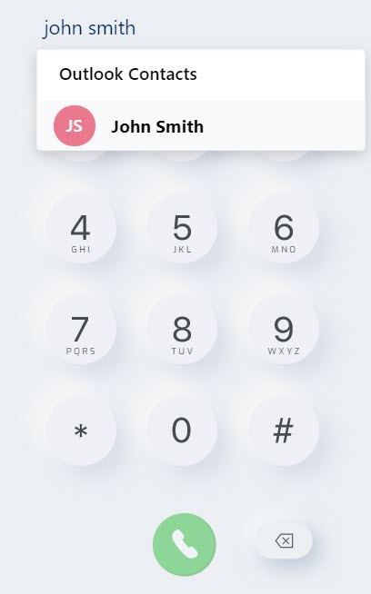 - Ingrese el número de teléfono del contacto usando el teclado de marcación que se muestra en la pantalla Llamar y haga clic en el icono