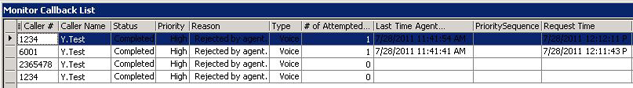 When licensed for IVR, the Global callback monitor enables you to monitor callback states in real time and displays the callbacks currently available. Using the Global callback monitor, you can requeue and delete callbacks. (See the following figure.)