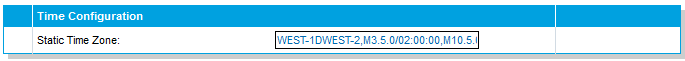 - W. Europe Standard Time: WEST-1DWEST-2,M3.5.0/02:00:00,M10.5.0/03:00:00