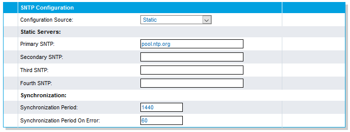 - Change to static SNTP server, enter time server data as required.Figure 5. Changing to Static SNTP Server