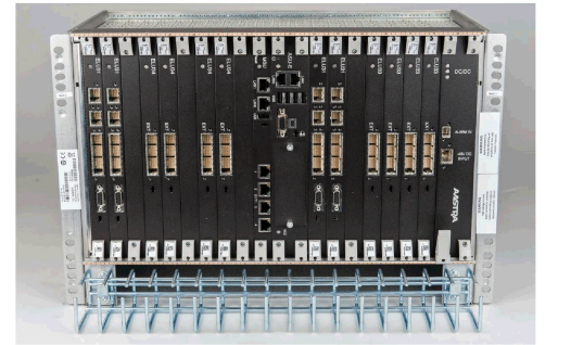 In the MX-ONE Classic (prod. No. BFD76140/x) the boards are mounted vertically in this 19 inch wide chassis. This chassis need additional Fan Unit. See Fan Unit (for 7U chassis) on page 8 . The chassis can only be feed by -48V in the front of the DC/DC-board.