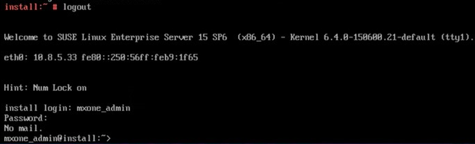 Log off from the system as a root user (if root is used) and then login as mxone_admin user.