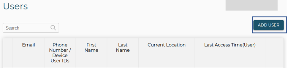 In the RedSky portal, go to Users and then select ADD USER.