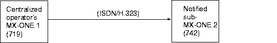 This function is only valid when the central answer position is a PBX operator. The function will not apply in the case of a CCOP. The most simple configuration using status notification would be according to the figure below, where one COP's MX-ONE, with own exchange number 719, notifies one sub-exchange, 742, of the day/night status.