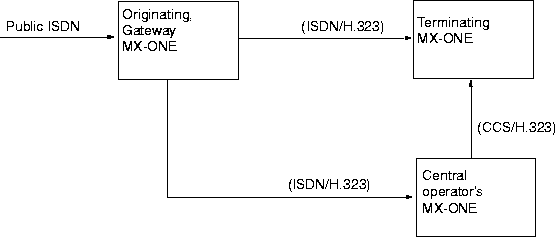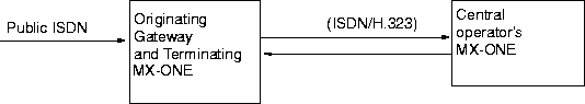 The exchange where the incoming public call enters the ISDN or H.323 network, that is, the signaling protocol changes, so it is also a gateway exchange. If the call originates from an internal party in the ISDN network, the originating MX-ONE is where that party is located. If the call originates from an internal party in the ISDN or H.323 network, it must never be rerouted.