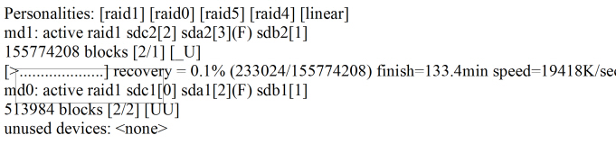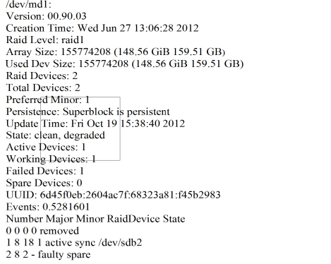 >mdadm --manage /dev/md1 --fail /dev/{broken_drive}2 \ --remove /dev/{broken_drive}2
