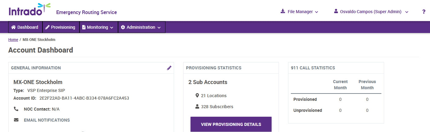 To be able to use the Intrado Emergency Routing Service (ERS) portal, you must contact the Intrado team and get your credentials.