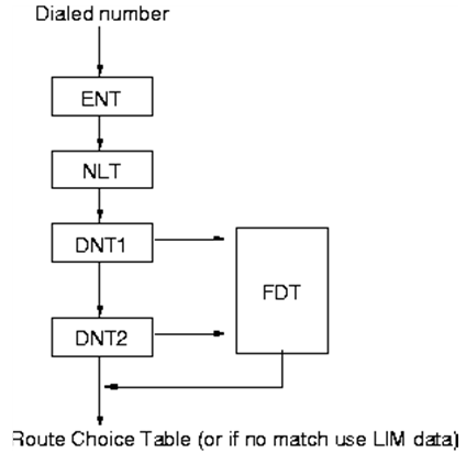 If no match is found for a dialed number in the ENT, the number will next be analyzed in the NLT.