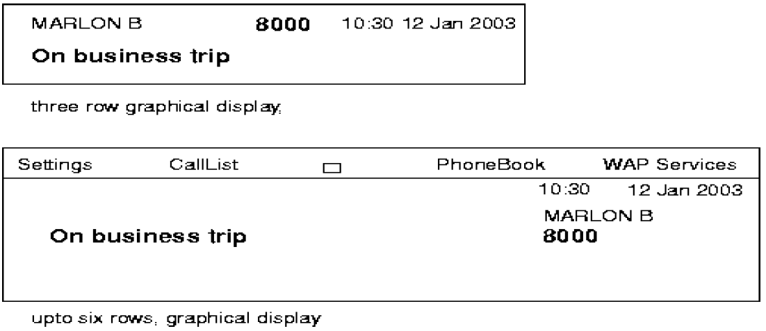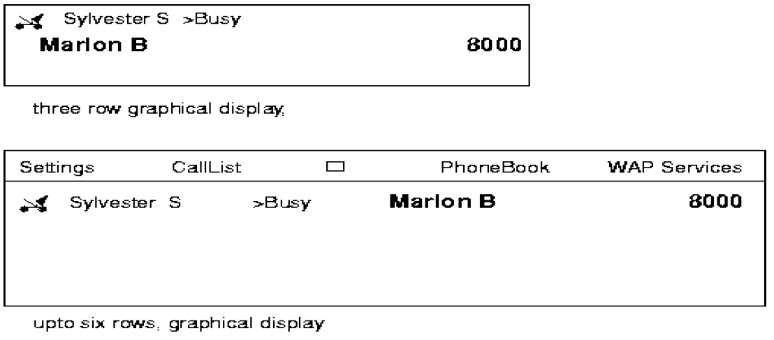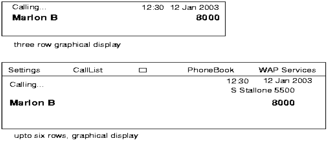 Outgoing call. STALLONE makes an outgoing call to MARLON BRANDO with directory number 8000. The display of STALLONE will show: