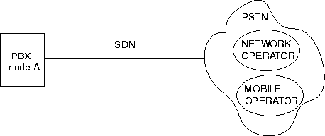 This section describes a scenario where one PBX system in one local area is connected to the PSTN and a public/mobile network.
