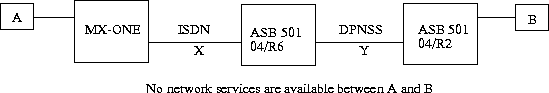 The ADC parameter in command RODDI for the ISDN route X (destination B) should be set to allow Supplementary Services Using UUI (that is, UUI element is allowed to be sent) even if link Y does not support network services. The reason for this is to convey the correct private number which is sent to the B-party within the UUI element.