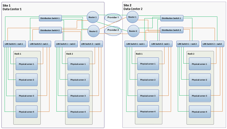 The figure below shows a high-level network redundant example.