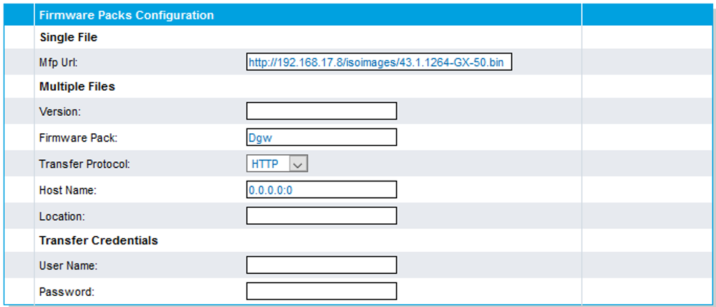 Enter the correct protocol and address information where the new firmware is located.