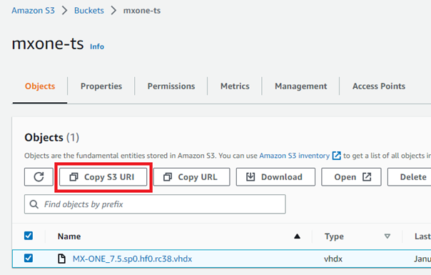 - Click the Copy S3 URI button to copy