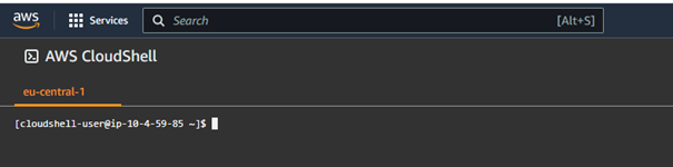 console, search for Cloudshell and select Cloudshell from the Services