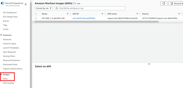 Once the conversion process is completed, the AMI is created in the same region where the S3 bucket was created. After the AMI is created, select your deployment region from the top- level bar to see the deployed AMIs in the current region.