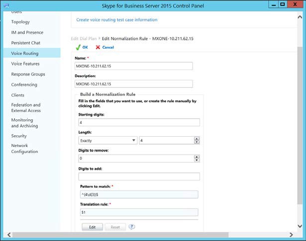 A rule for Lync users to dial to MX- ONE terminals and another to