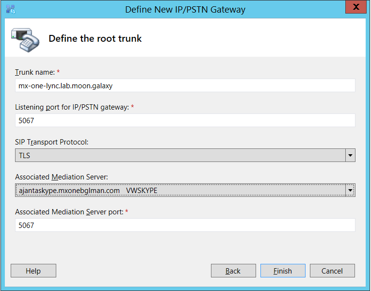 Gateway. The Define the PSTN Gateway FQDN dialog box