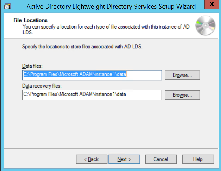 - Using the default values for storage location of ADLDS files.