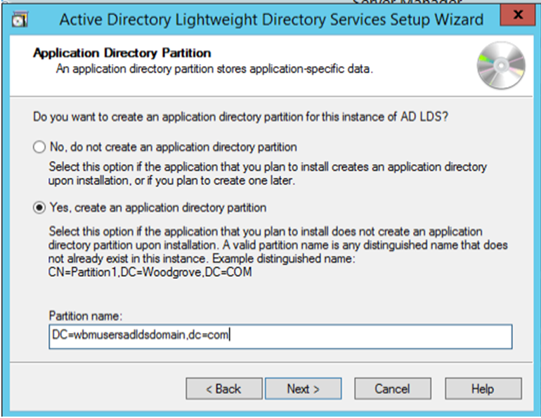 and application directory partition and enter the Partition name.
