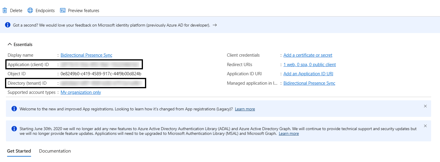 Die Registrierung der Azure-Anwendung wird durchgeführt, um die Präsenz-Synchronisierung von CloudLink auf Microsoft Teams herzustellen.
