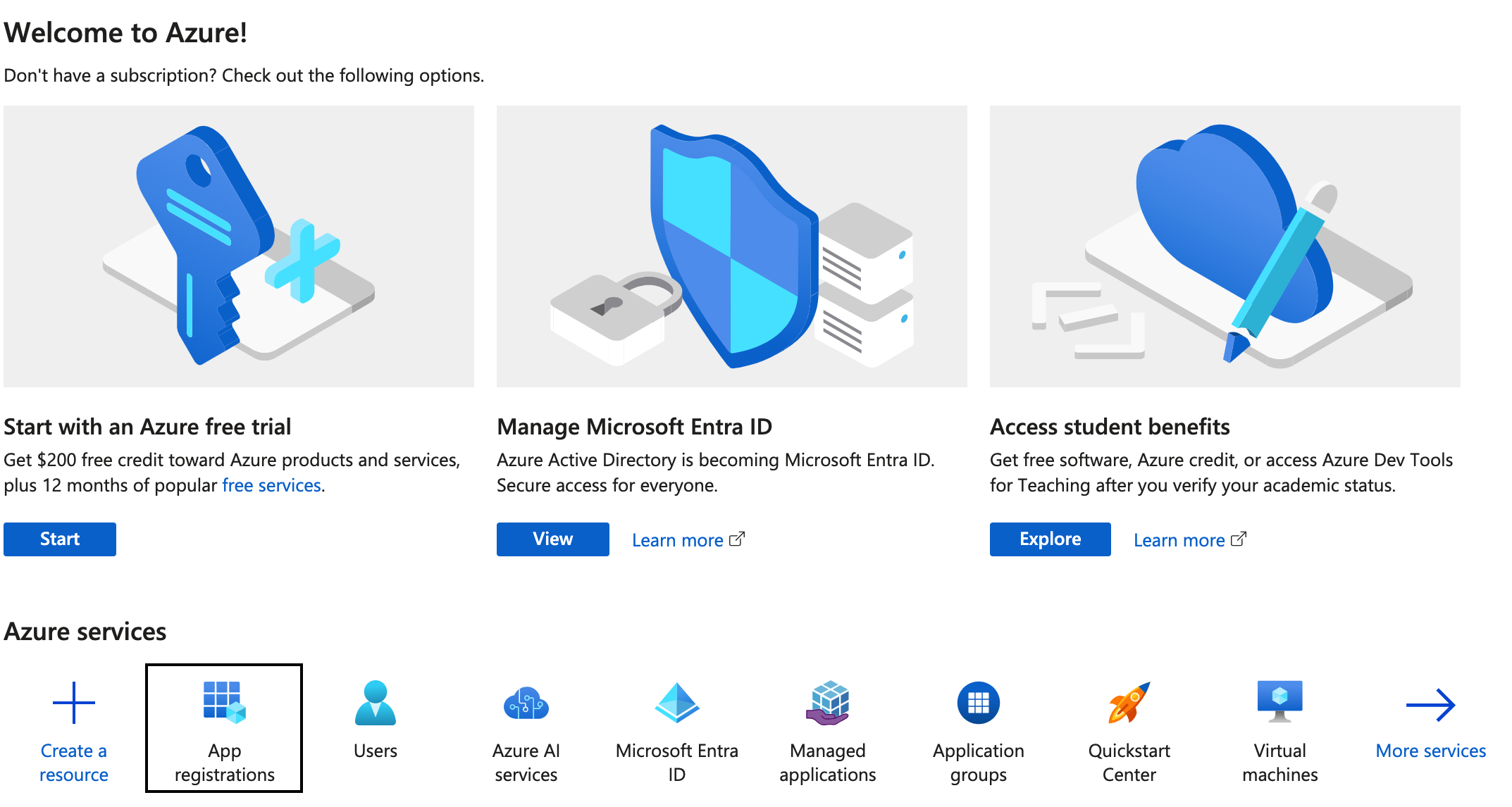 Im Azure-Portal, klicken Sie auf App-Registrierungen.