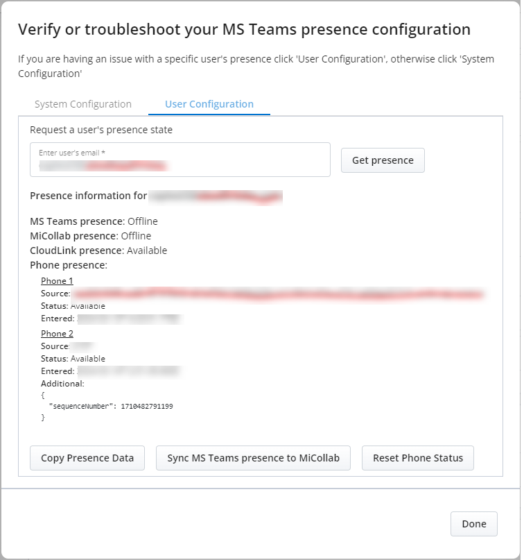 Klicken Sie auf den Telefonstatus zurücksetzen und dann auf Alle MS Teams-Präsenz mit MiCollab synchronisieren.