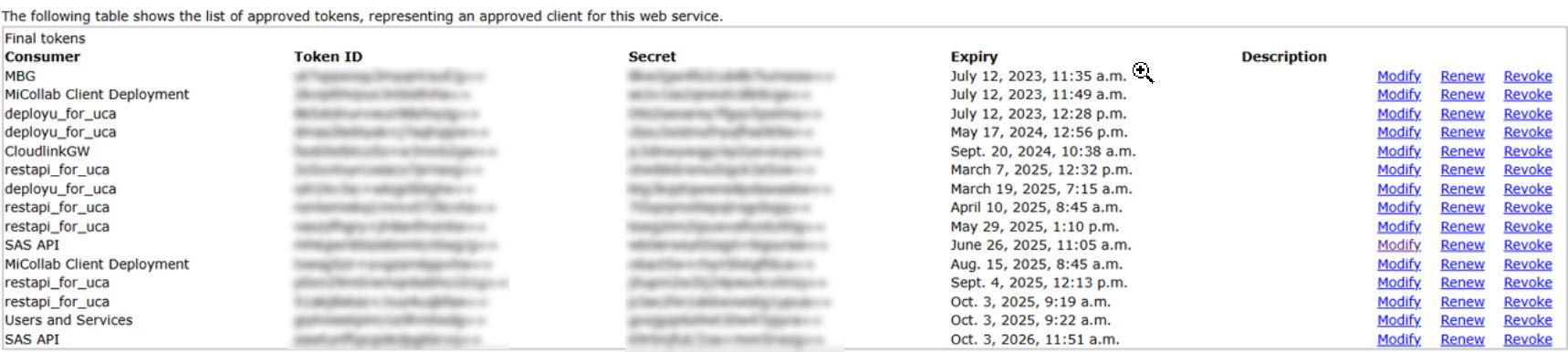 - Check the SAS API web services token in MSL on the MiCollab server.