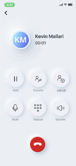 - Durante una llamada de conferencia, los participantes en la llamada pueden silenciar la llamada, poner la llamada en el altavoz, intercambiar la llamada, usar el teclado de marcación o finalizar la llamada.