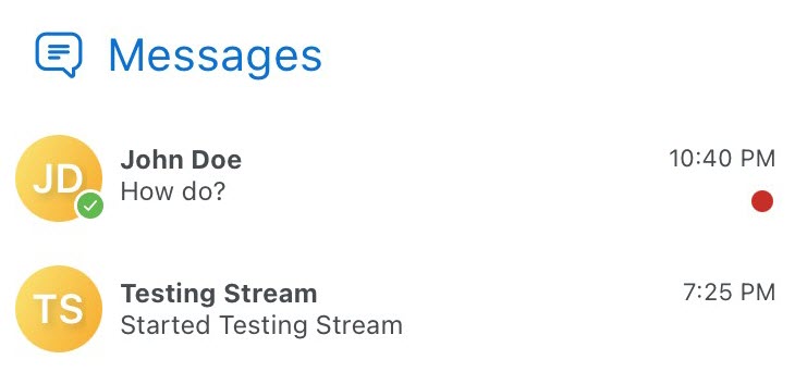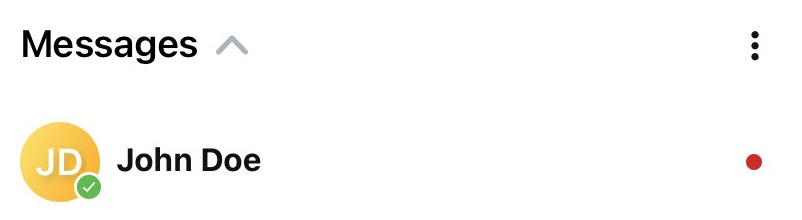 - El icono de Mensajes en el menú de navegación muestra un punto de notificación rojo (