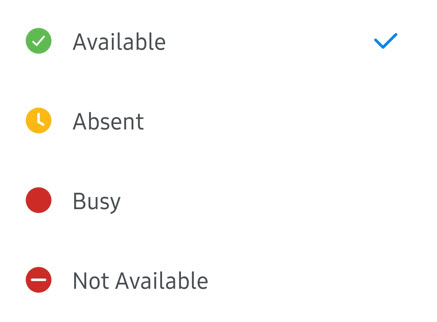 - Toque la opción correspondiente para configurar su presencia como Disponible, Ocupado, Ausente o No disponible.