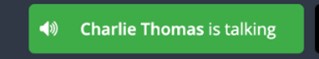 Cette icône en haut à droite de votre écran est l'indicateur de l'interlocuteur actif. Elle affiche le nom de l'orateur pendant une réunion. |