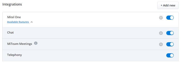 - Fare clic sull'elenco a discesa Funzioni disponibili sotto l'integrazione di Mitel One.