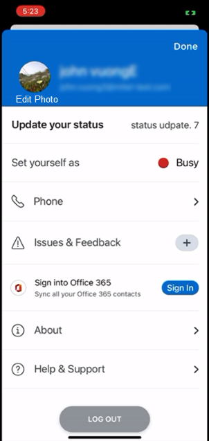 Si accederà con il proprio account Microsoft Office 365 e si potranno cercare i contatti dell'organizzazione. Per disconnettersi dal proprio account Microsoft 365, fare clic su Disconnetti nella pagina delle impostazioni. Fare clic su Continua per confermare la disconnessione.