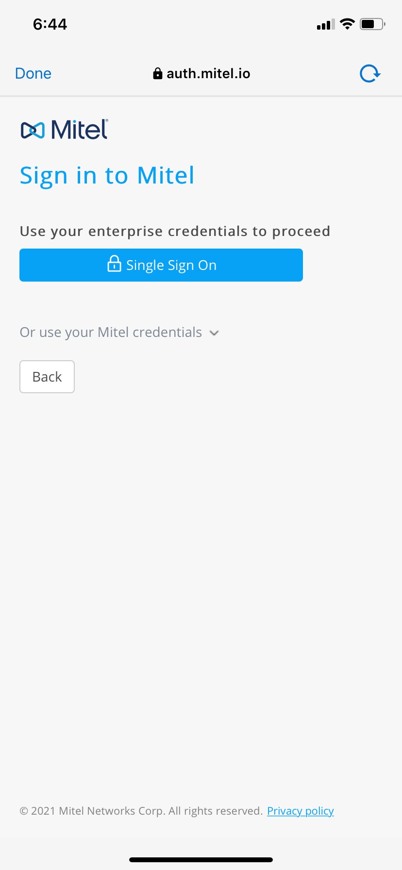 - Toccare l'opzione Oppure usa le tue credenziali Mitel.