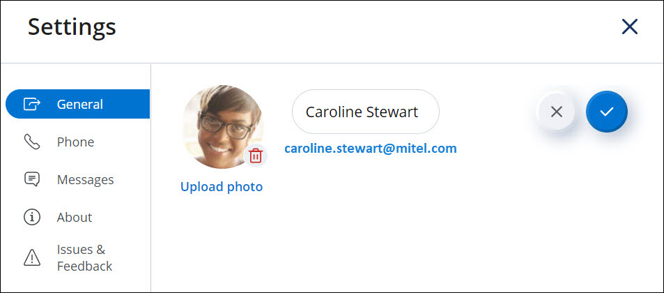 ).Note: U kunt uw naam niet wijzigen in de Mitel One applicatie.