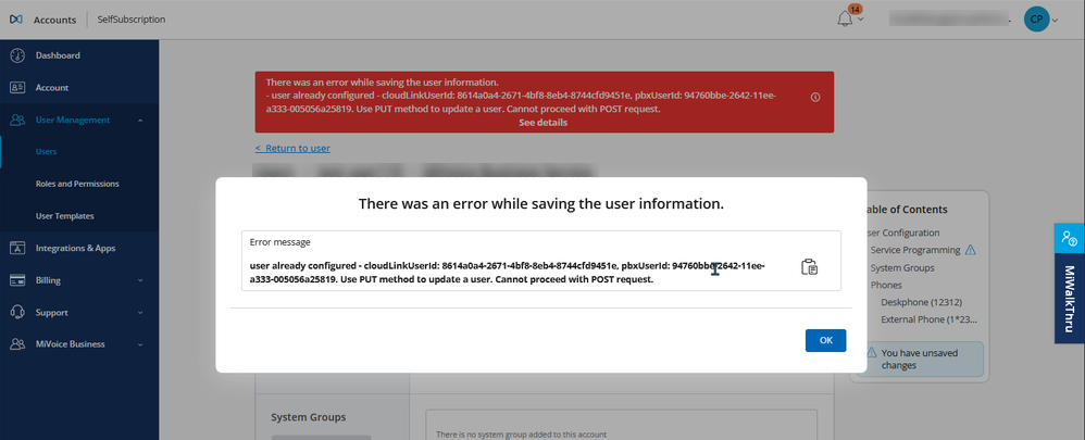 | User Name | This is the name of the Mitel Partner or the Account Admin as in Mitel Administration. To change this name, click the user in the Users page, edit the name, and click Save. |